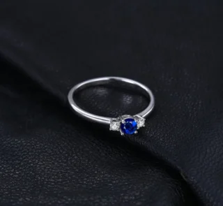 Blue Sapphire Promise Ring 3 Stone 925 Sterling Silver